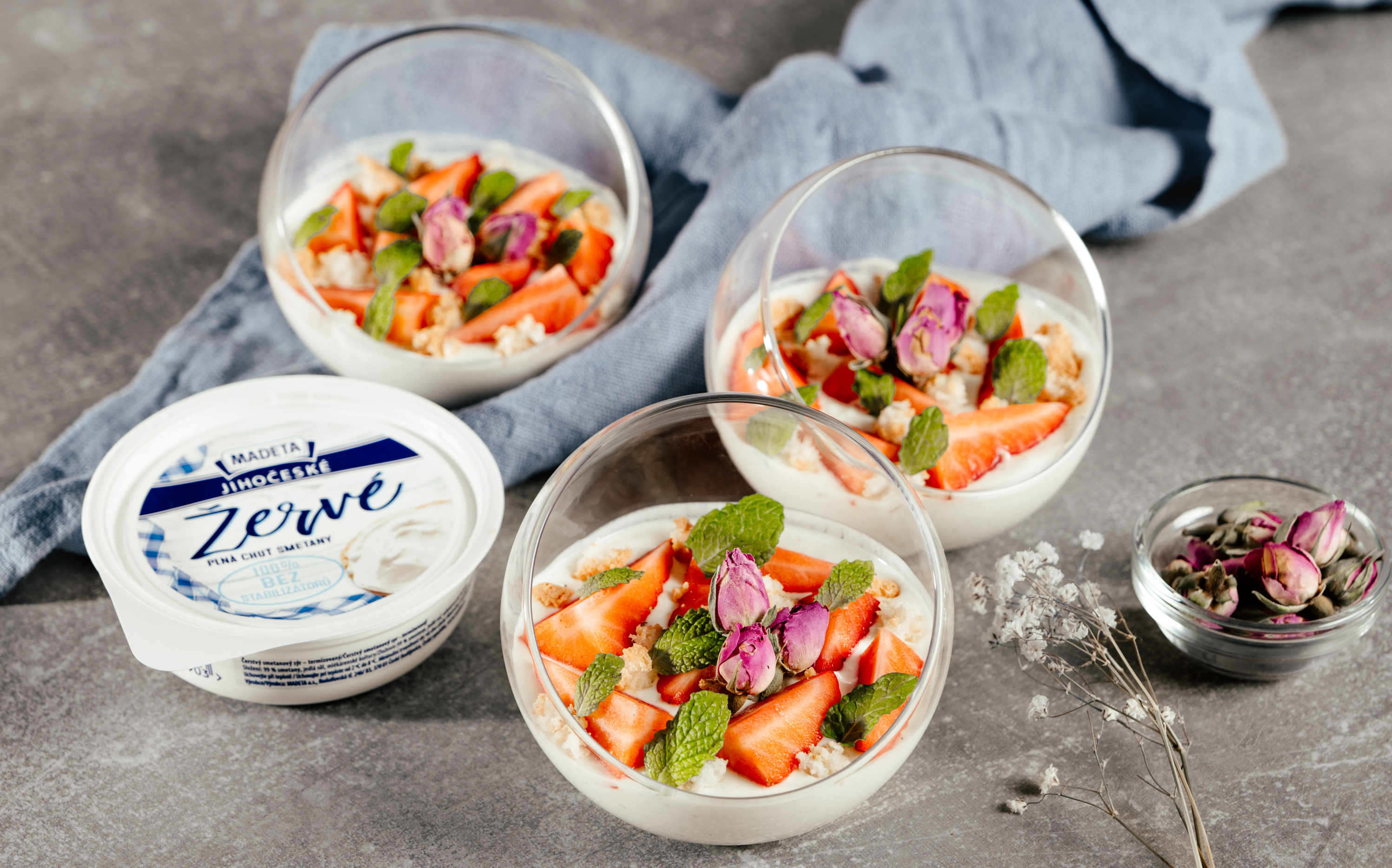 Panna cotta s tvarohovým Lipánkem a jahodami