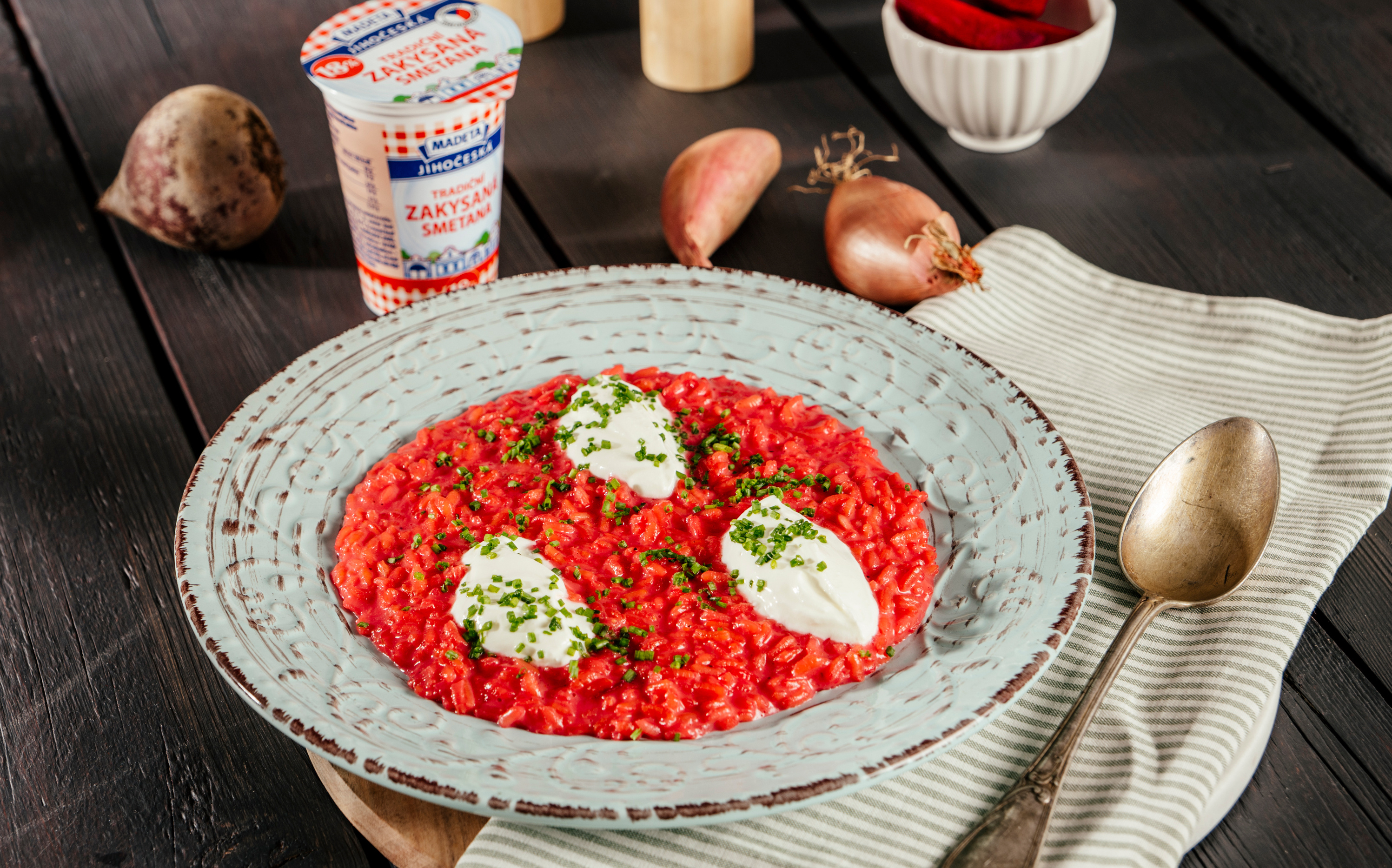Rizoto z červené řepy s Jihočeskou zakysanousmetanou