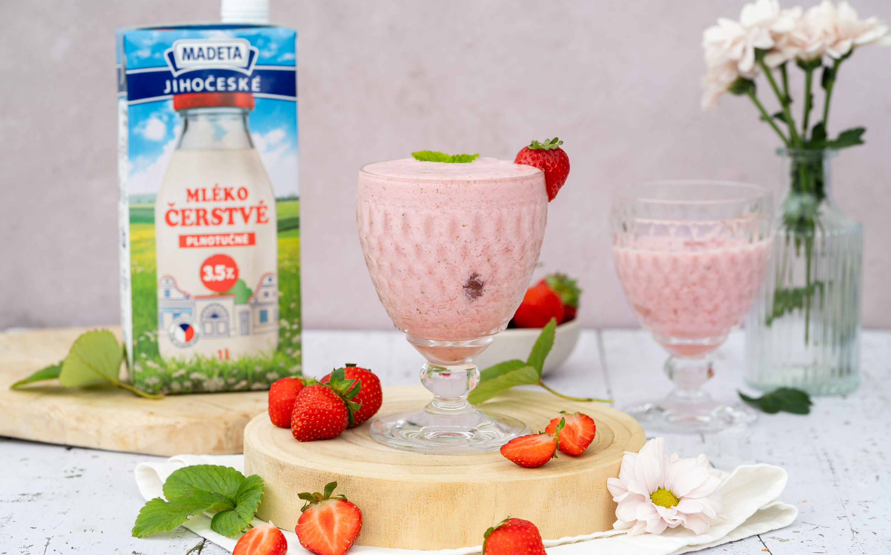 Jahodovo‑rebarborová bublanina s jahodovým mliečkom Lipánek