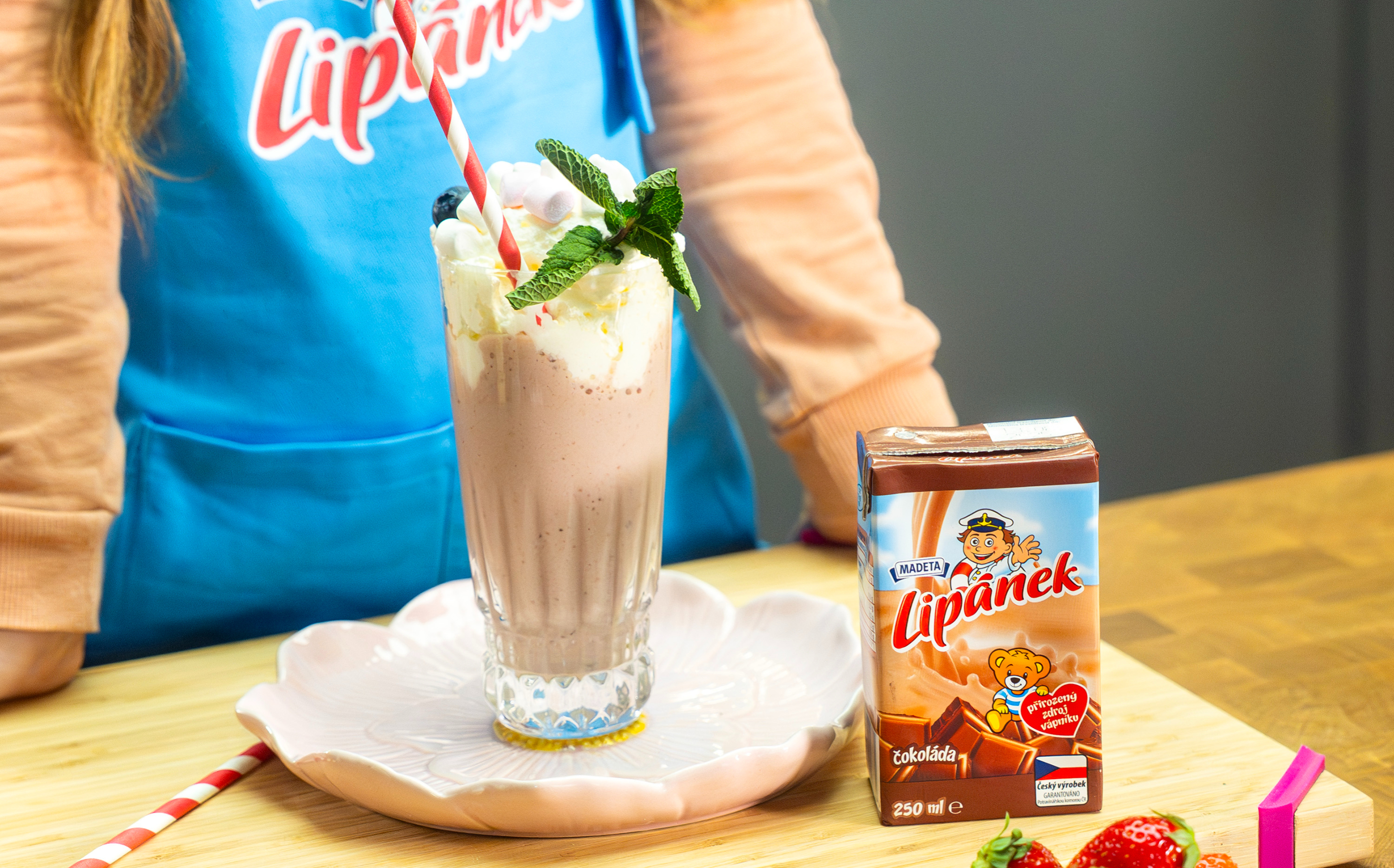 Jahodovo-čokoládový koktejl se sladkým mlíčkem Lipánek
