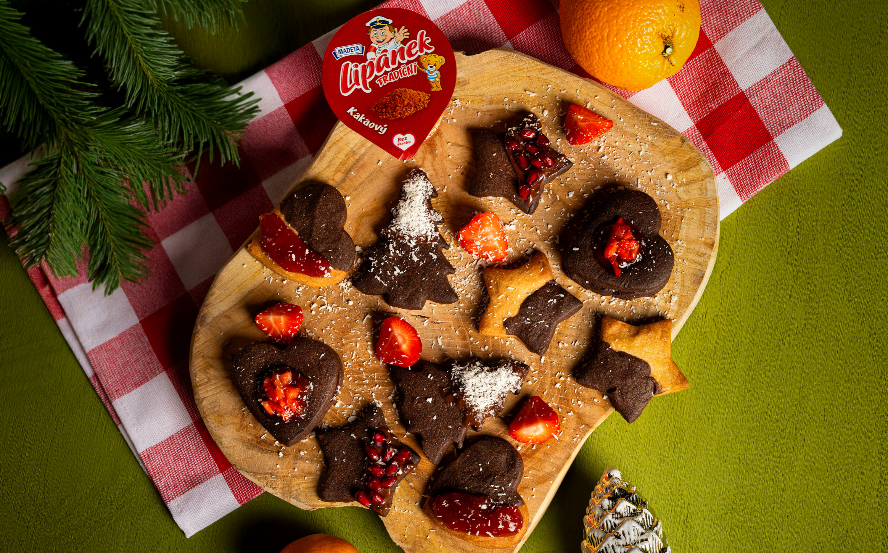 Ingrediencie (8 porcií): 2× Lipánky tvarohové 150 g Jihočeského masla 150 g cukru 3 vajcia 120 ml Jihočeského mlieka 250 g polohrubej múky 1 kypriaci prášok do pečiva 2 lyžice kakaa štipka soli