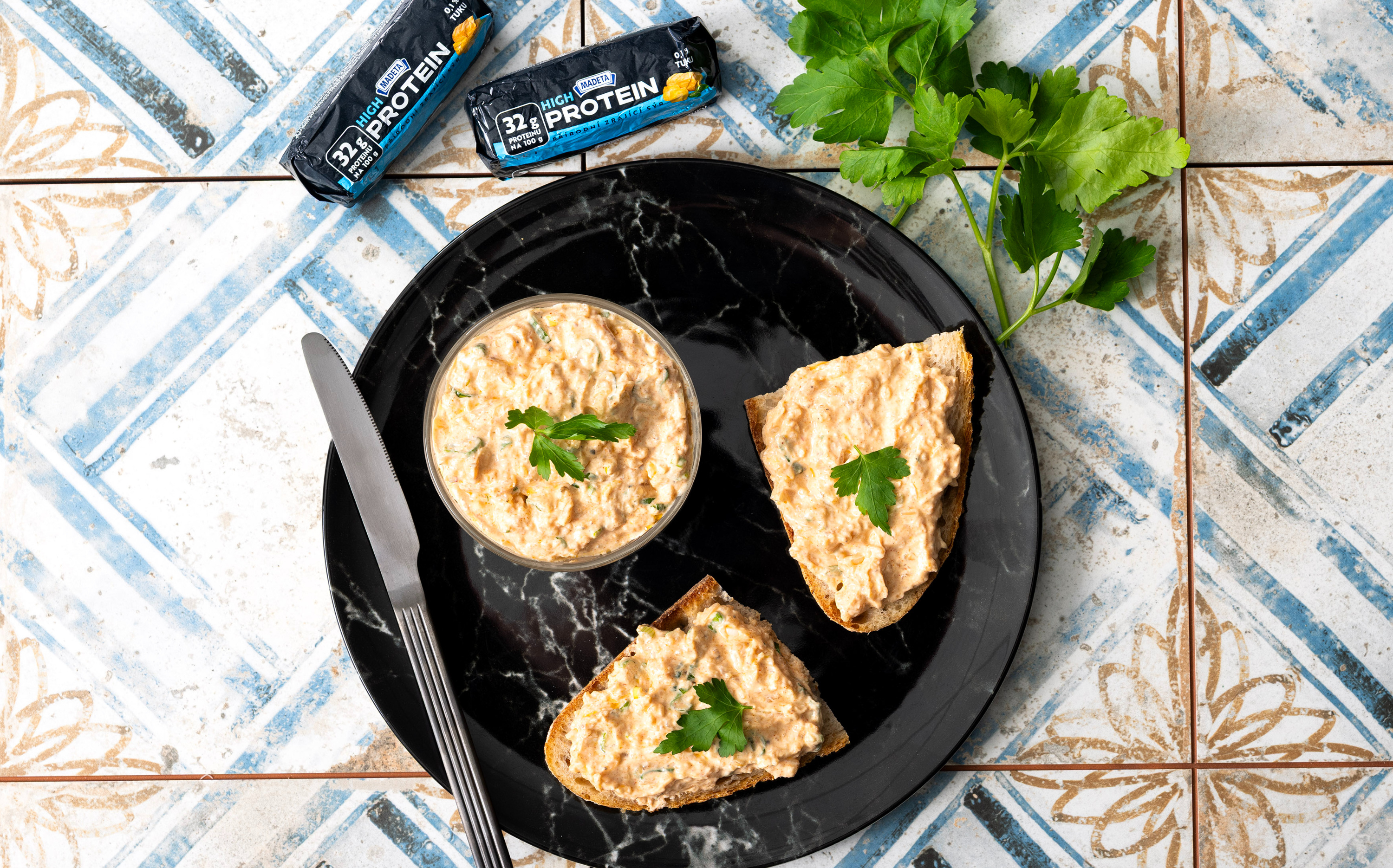 Do mísy dáme bílý Jihočeský Nature jogurt, Jihočeské žervé, jarní cibulku nasekanou nadrobno a najemno nastrouhaný High protein přírodní zrající sýr. Směs ochutíme uzenou paprikou, hořčicí, solí, pepřem a zakápneme olivovým olejem. Promícháme do krémové konzistence. Pokud je pomazánka příliš hustá, přidáme trochu jogurtu navíc. Necháme alespoň 20 minut odležet v lednici. Podáváme s čerstvým nebo opečeným pečivem.